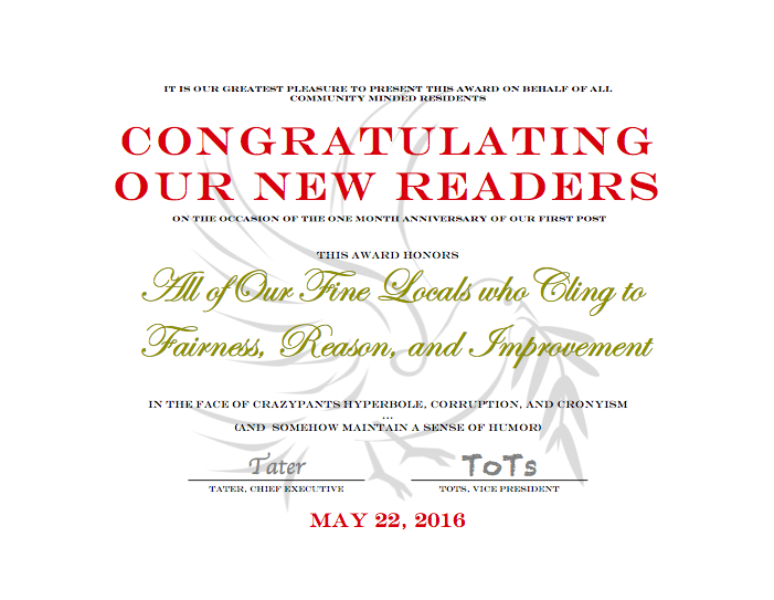 Here’s to you! Bravo! May 22, 2015 fclocalyokel Today, of all days, we the people need a little award for our pain and suffering. Share this:TweetLike Loading...