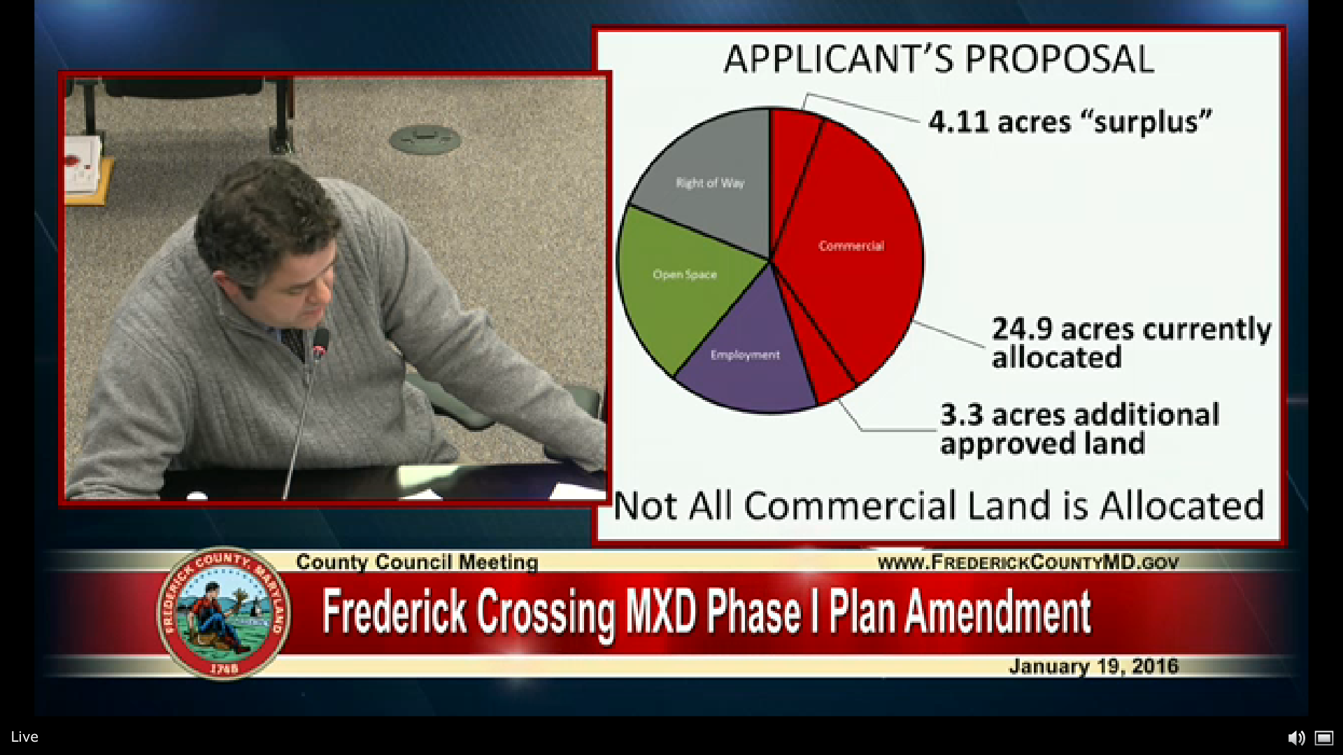 This section of the meeting was totally devoted to Ourisman’s plea to rezone the parcel of land behind Wal-Mart so they could expand their dealership. No kinks here and the rezone was passed. One observation from this section. Billy take a lesson on how to present visual aids. Because this: