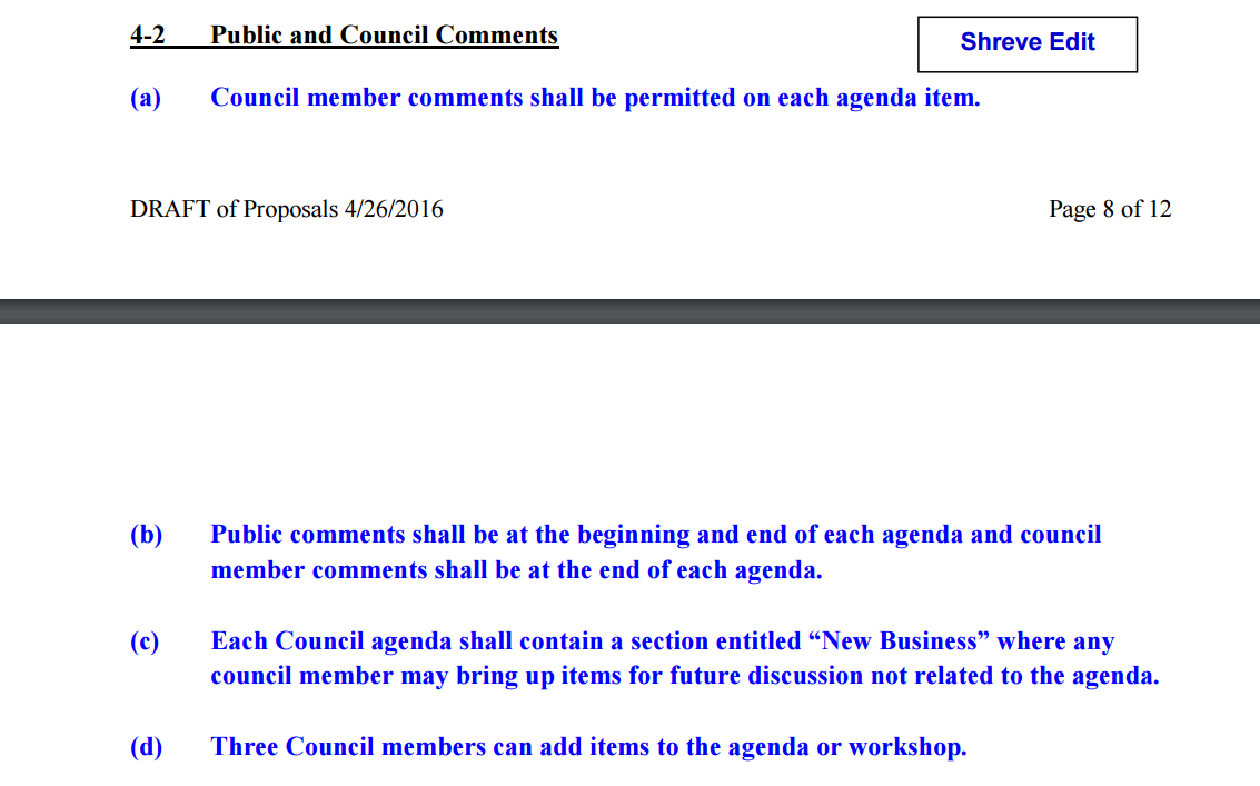 No meeting this week, however, the council will be having a workshop this afternoon. On the agenda is the county attorney’s answer to how to amend the charter, an opportunity for any and all council members to submit any and all budget amendments (hear that Billy, Kirby and Tony…any and all!) and some more discussion on county council procedures. Here’s the full document, let’s take a peek at something Billy wants changed: