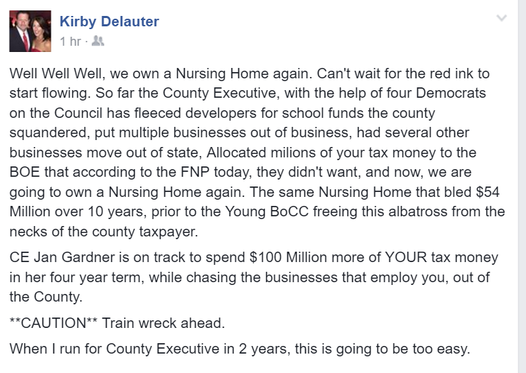The county is predicting a $2.5 million profit in the next year. So what will the rhetoric be then Mr. Delauter?