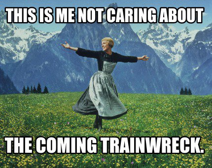 His next line: CAUTION: TRAIN WRECK AHEAD.