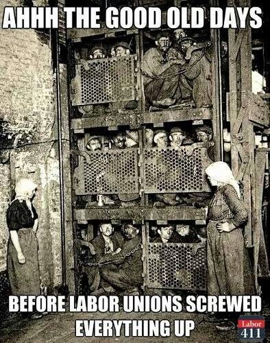 Then he’s off explaining his legislative ideas. Since we already discussed them last night, we aren’t going to rehash the horror. We do feel the need to say something about his anti-union proposal though. We are going to postulate that perhaps Kirby isn’t aware of the history of labor in our country. Perhaps he is ignorant of the fact that our benevolent Titans of Industry didn’t give more than a rat’s ass about the workers in their factories.