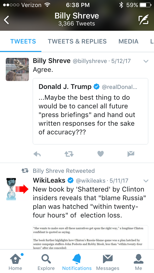 Does Billy condone violence against reporters? Let his Twitter feed be your guide.