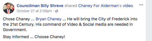 Check out this post from The Frederick Extra.  Bryan Chaney, candidate for city alderman, forged his daughter’s name on an application for an absentee ballot.