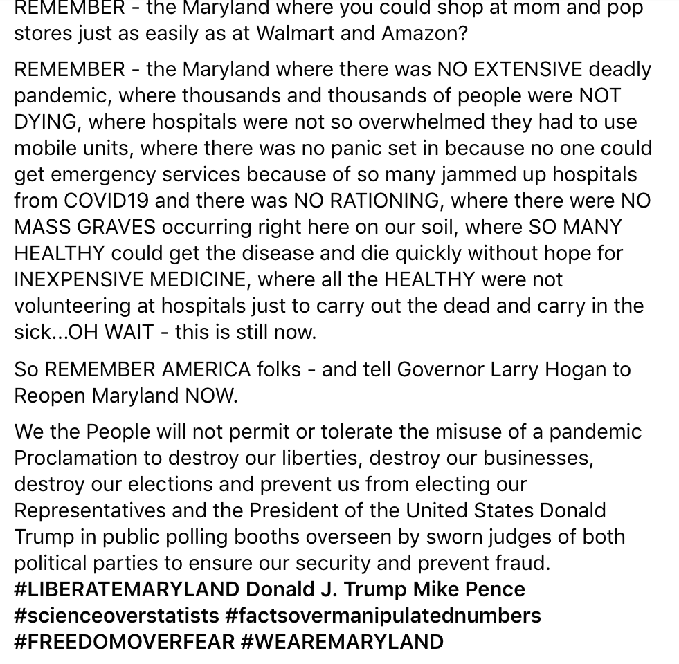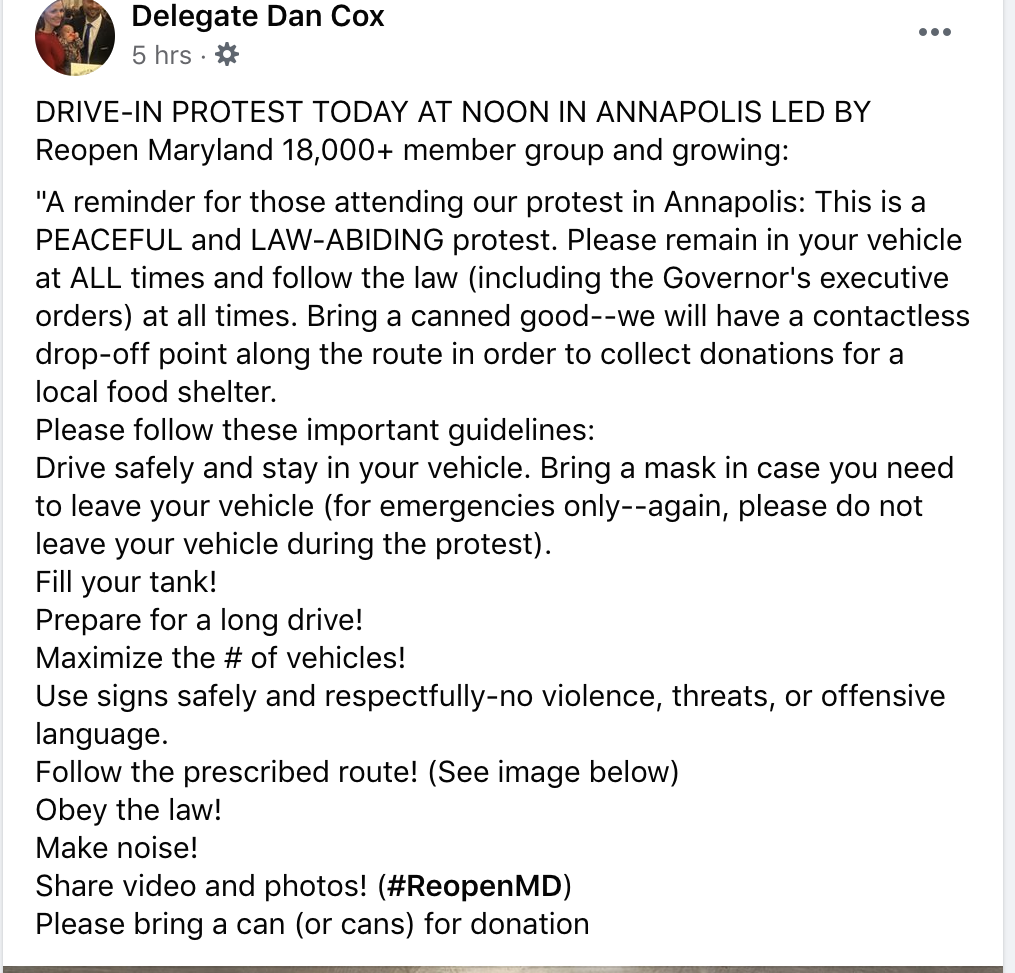 It gets worse, because of course it does. He’s also advocating that everyone go on down to Annapolis today and clog the hell out of traffic. Because that’s not dangerous at all in a health crisis…He also makes some claims that make it seem as though he’s the one inflating the numbers around here!