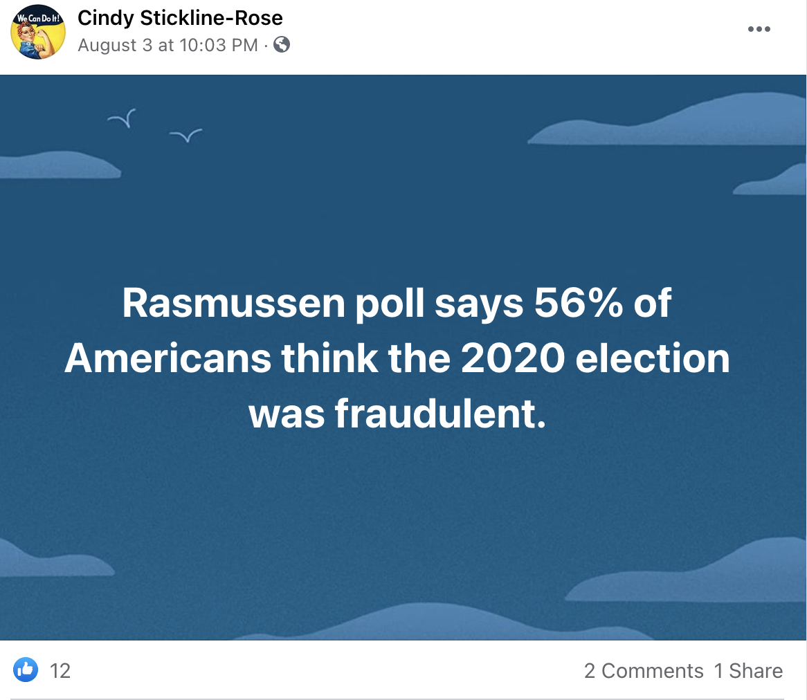 Thrice loser, Cindy Rose, is hoping all this fraudulent election stuff (Trump is going to be President again don’t ya know!), harmful vaccines, unhealthy kid muzzles, and teaching people about the actual history of the U.S.A. is finally going to be her ticket to a place on the board.