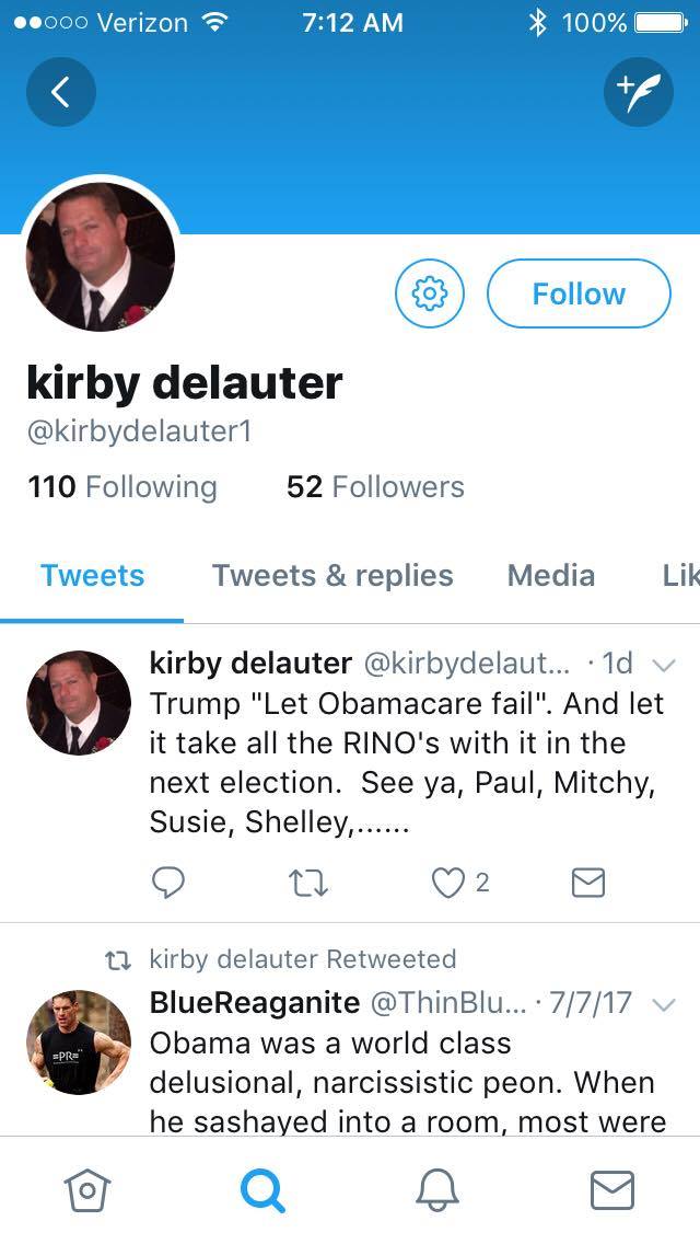 Those are the RINOs? Wowza. Kirby’s on well water, right? I hope whatever is poisoning his kooky noggin is not affecting the rest of us. Aside: 52 Followers? Good luck with your campaign #52. And best of all a parody account from back in the “Don’t put my name in the paper without permission” days has 10 times as many. Oh, man.