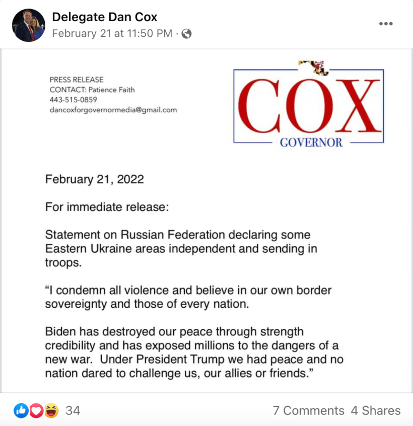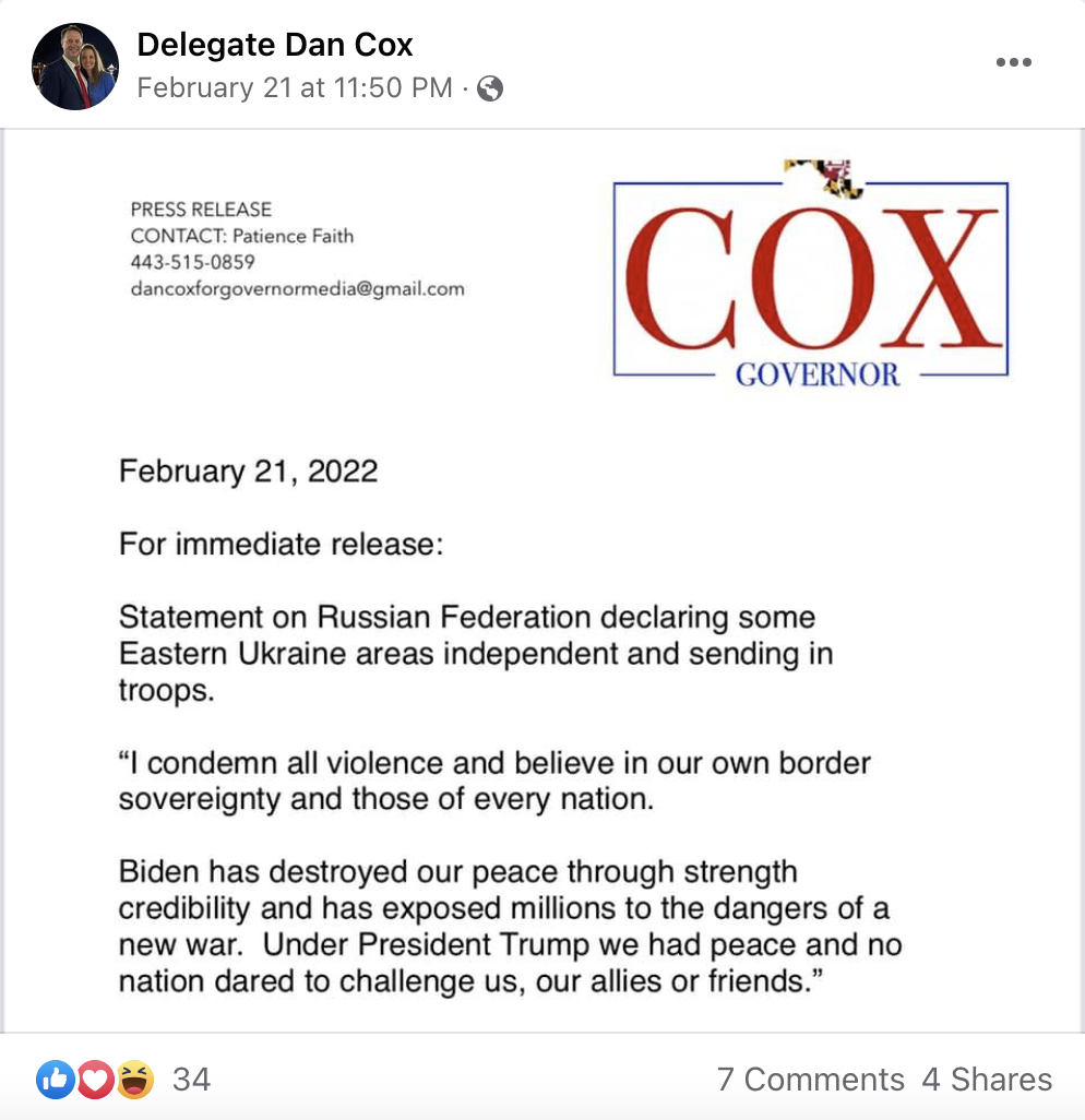 We are so sorry to have to break this to you, but Dan Cox is actually running for Congress. We say “actually” because if you remember back to July he reported his own “false filing” that was done by an employee of his.