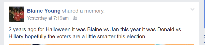 Hello faithful readers, we hope you had a very Happy Halloween. In this last week leading up to the election, we thought y’all could use some comic relief. An alert Facebook reader sent this down the ole Yokel line today: