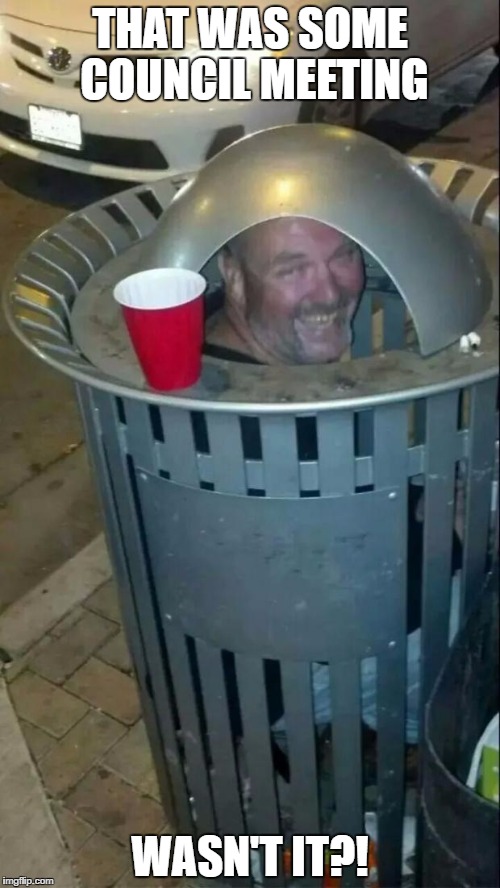 Oh, man. Tread carefully around the landfill workshop held at Kirby’s behest. By the time we got through the new business, day drinking seemed like an attractive option. It seems that ‘ol Hashtag thought he was going to get a constituent issue addressed by calling the Waste Management staff out so he and his drinking buddies could needle them about how they figure out if people are allowed to bring trash from outside the county and dump it in our landfill or not, which is not allowed. There’s some cautioning from staff about making imprudent decisions that could inadvertently drastically increase the amount of trash, filling the landfill faster.