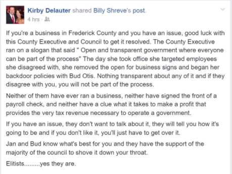 The fact that constituent issues are not on the agenda for discussion at this time prompts a huge Delauterburst man-tantrum during the staff briefing. And you don’t have to take our word for it, because did Kirby Delauter take his tantrum to social media (also, it’s at about 43 mins on the archived video)? Well, does a bear poo in the woods? You betcha. Look at that. He didn’t even have to write this himself.