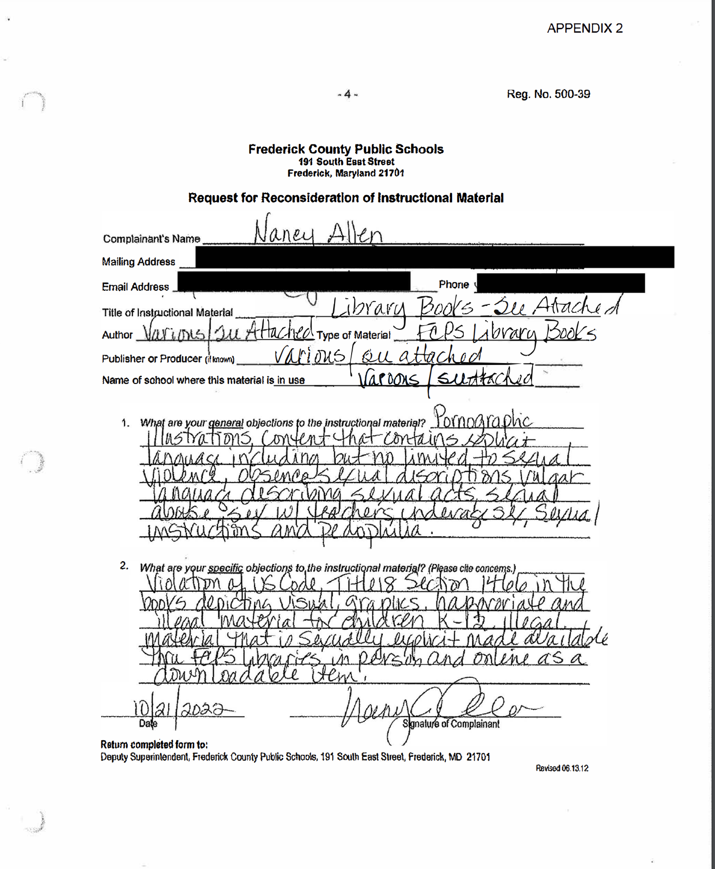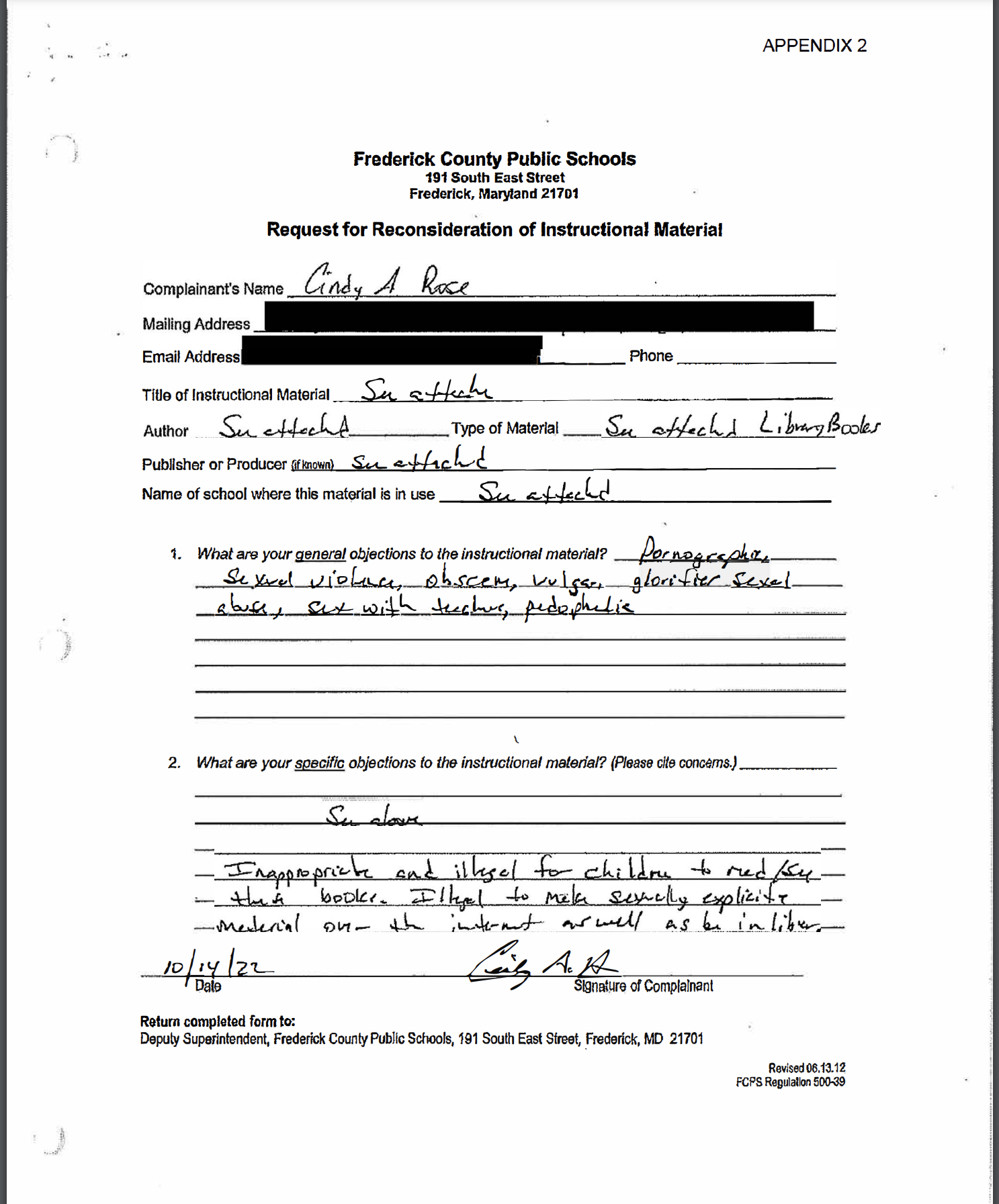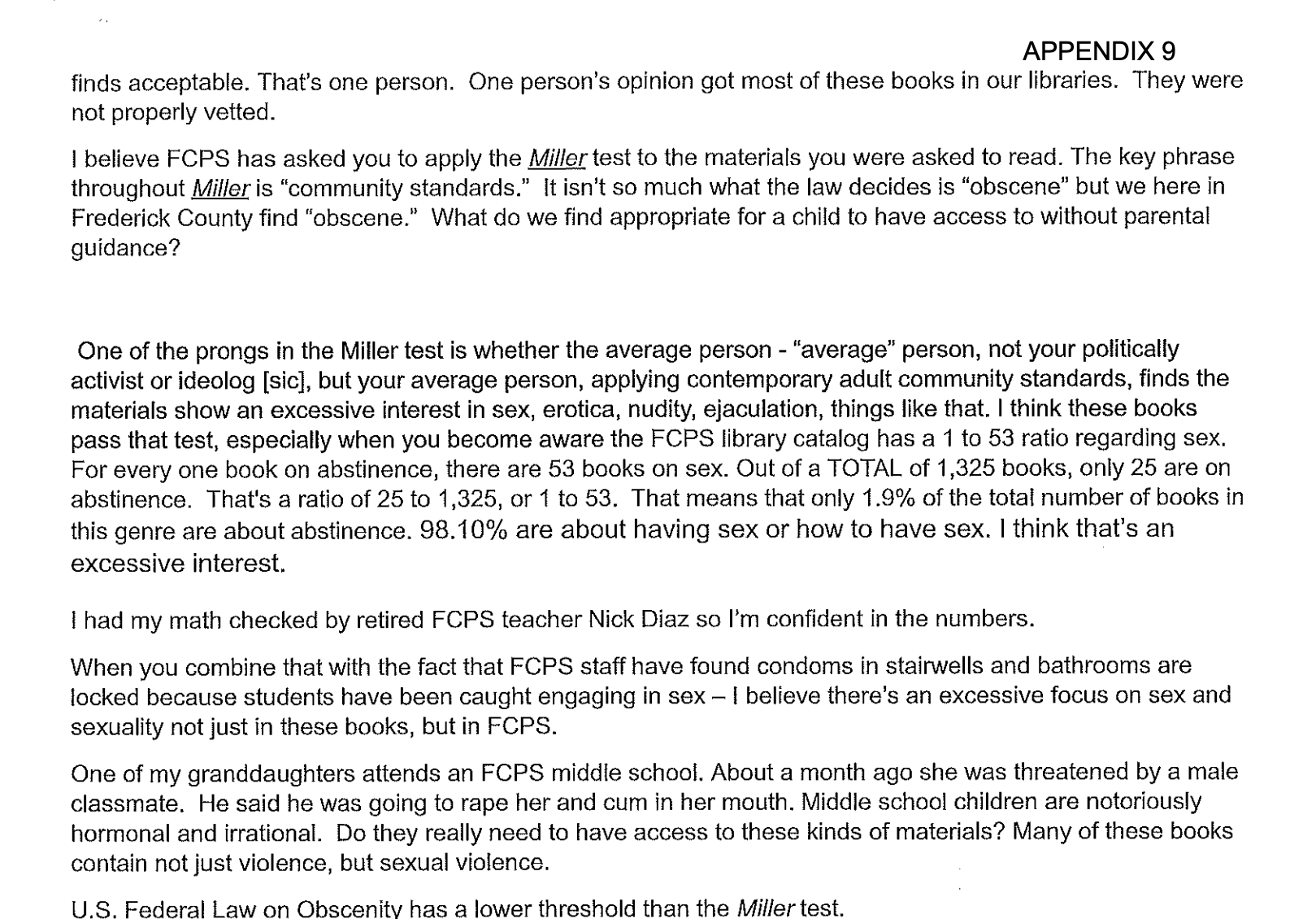 Before we get to some examples of the evaluation of these books, we need to share some more of the written and verbal testimony from both Cindy and current board member (!) Nancy Allen!