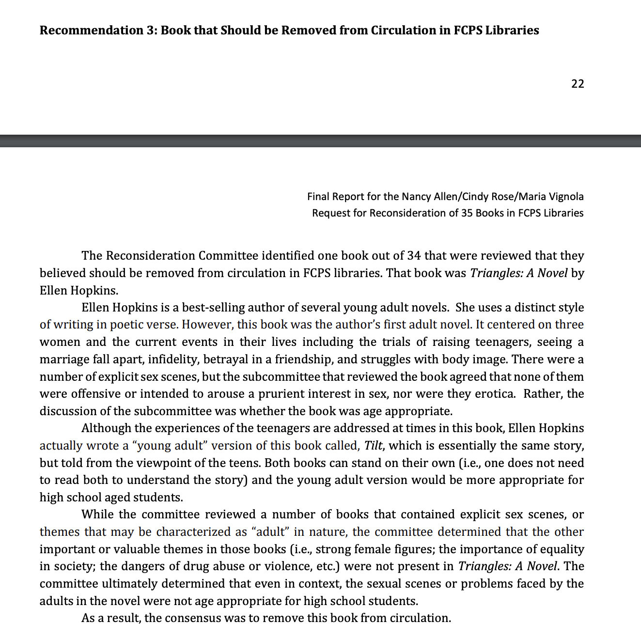 Also, FCPS is going to start allowing parents to prohibit their child from checking out books they don’t want them to read. Therefore, if this is really about protecting their children from themes they don’t believe they are ready for and not about marginalizing groups of people and opinions they find offensive, then this case is officially closed.