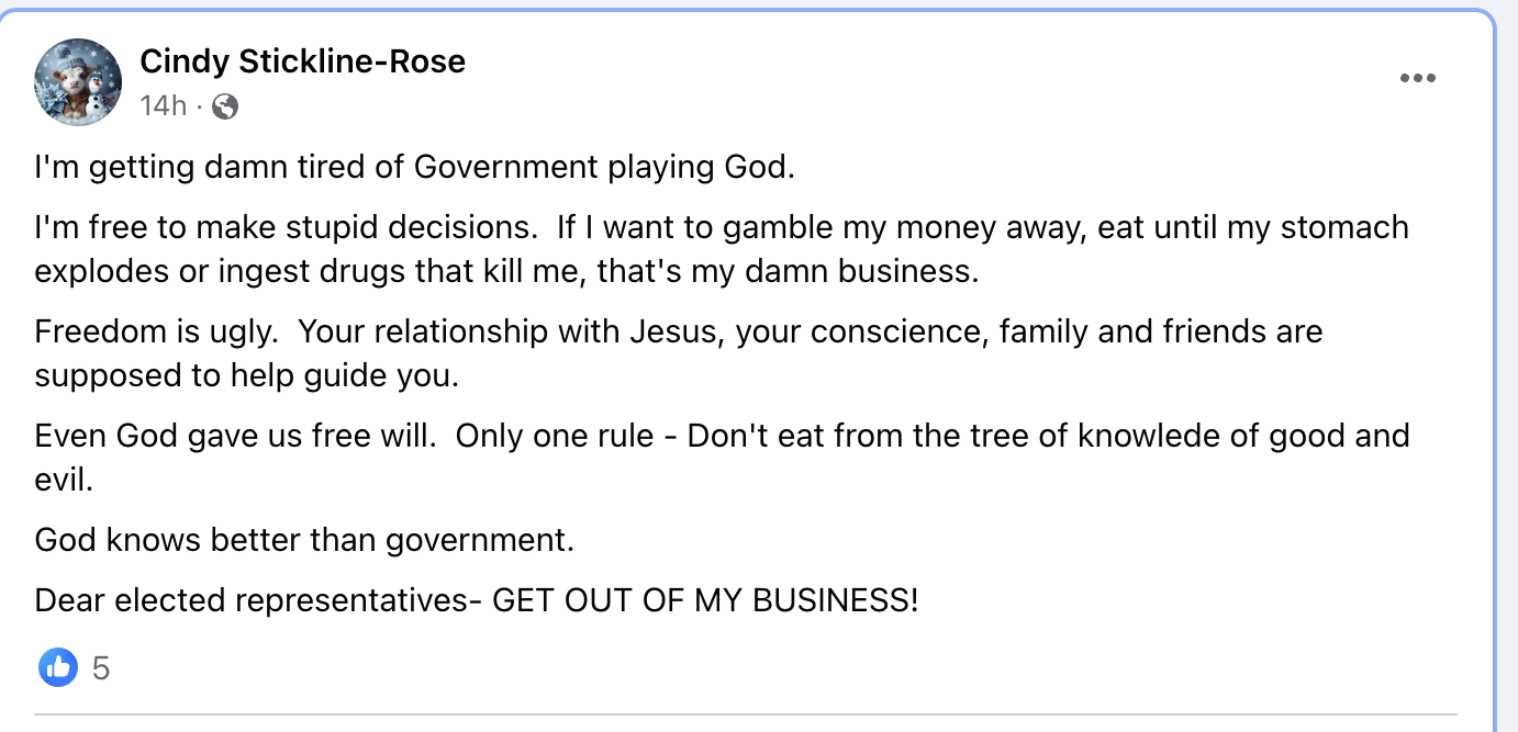 Overall, a resounding victory for intellectual freedom and sanity. So how is our friend Cindy doing on her day of resounding defeat? NOT SO GOOD…..