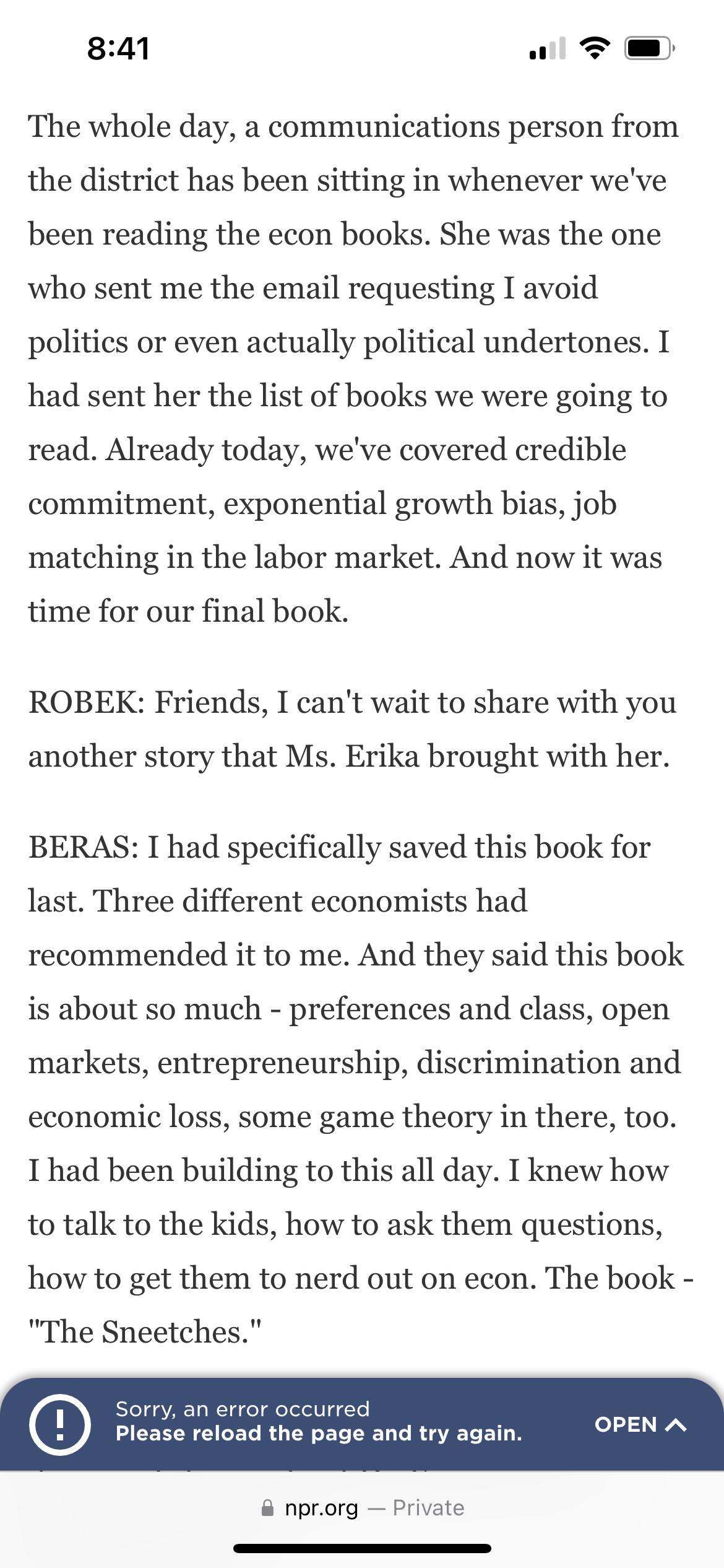 NPR sponsors a podcast called Planet Money. Last week, this podcast did a story on how picture books can teach young children about a variety of economic concepts. Before this podcast, a list of books was sent to the school district and it was agreed that the books were appropriate for 3rd graders. Well, at least until those 3rd graders had the nerve to connect one story to historical events.
