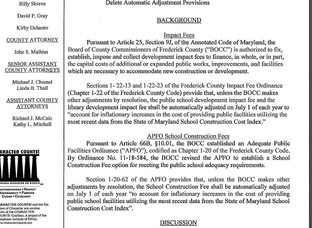 The Board of County Commissioners, which included Shreve and Delauter, voted unanimously on Sept. 25, 2014, to support a joint resolution with the city of Frederick in favor of the project.