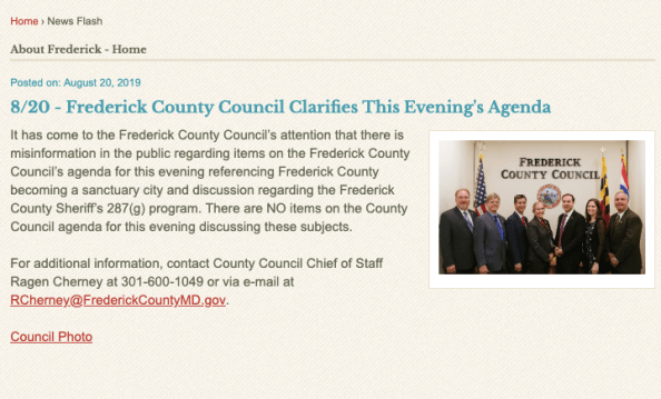 “to make a commitment to Frederick County taxpayers by pledging that they will never support policies that would make the county a ‘sanctuary county’ for illegal immigrants.”